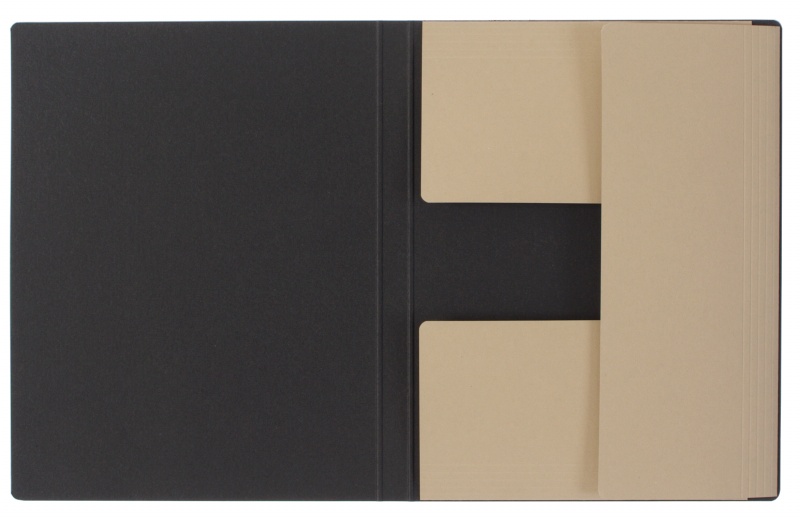- Straight pocket with expanding gusset made of 250gsm grey cardboard glued into front cover