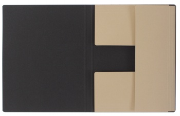 - Three flaps made of 250gsm grey cardboard, each with 6 bending creases, glued into top, bottom, and side of rear cover
