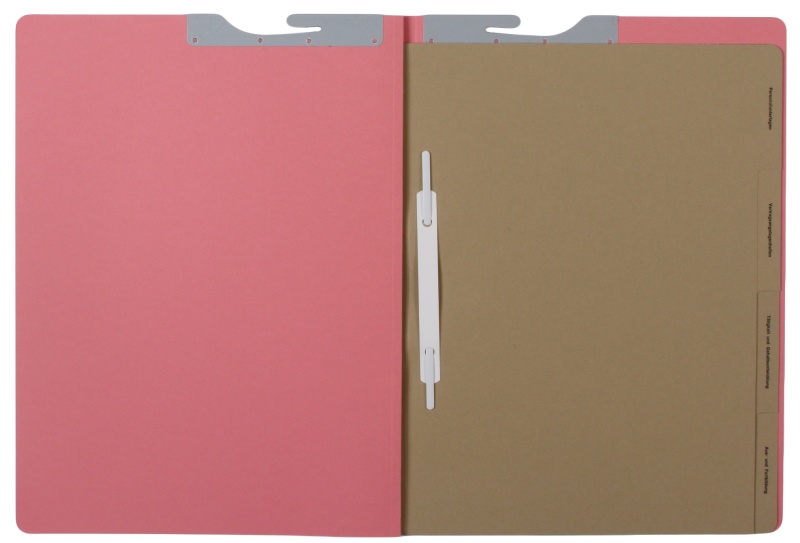 - 4 dividing sheets made of 250gsm grey cardboard with printed tabs wirestitched into spine, each tab with a plastic-coated fastening strip without cap, 160mm long, and a plastic cover strip; right-hand fitting