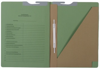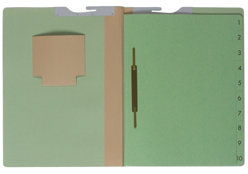 - Ten 250gsm green cardboard dividing sheets with metal fittings wirestitched into spine