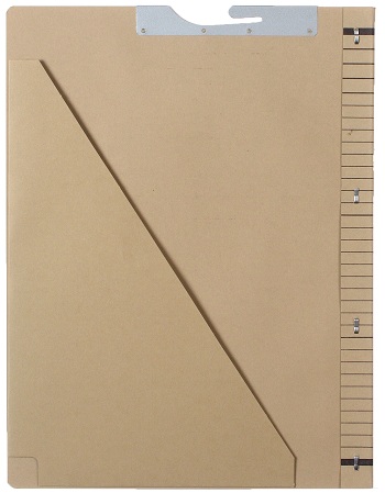 • Diagonal 250gsm grey cardboard pocket with flat gusset glued onto front cover
